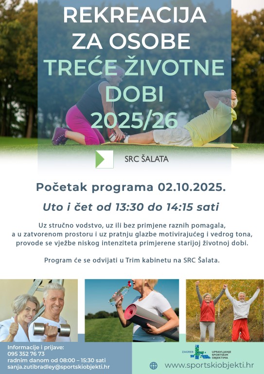 Oprema za vježbanje: udobne tenisice, tajice ili trenirka, mali ručnik i boca s vodom. U slučaju zdravstvenih problema (visoki tlak, problemi s kralješnicom, srcem, zglobovima….) prije uključivanja u program potrebno je mišljenje liječnika koje treba donijeti voditelju programa.